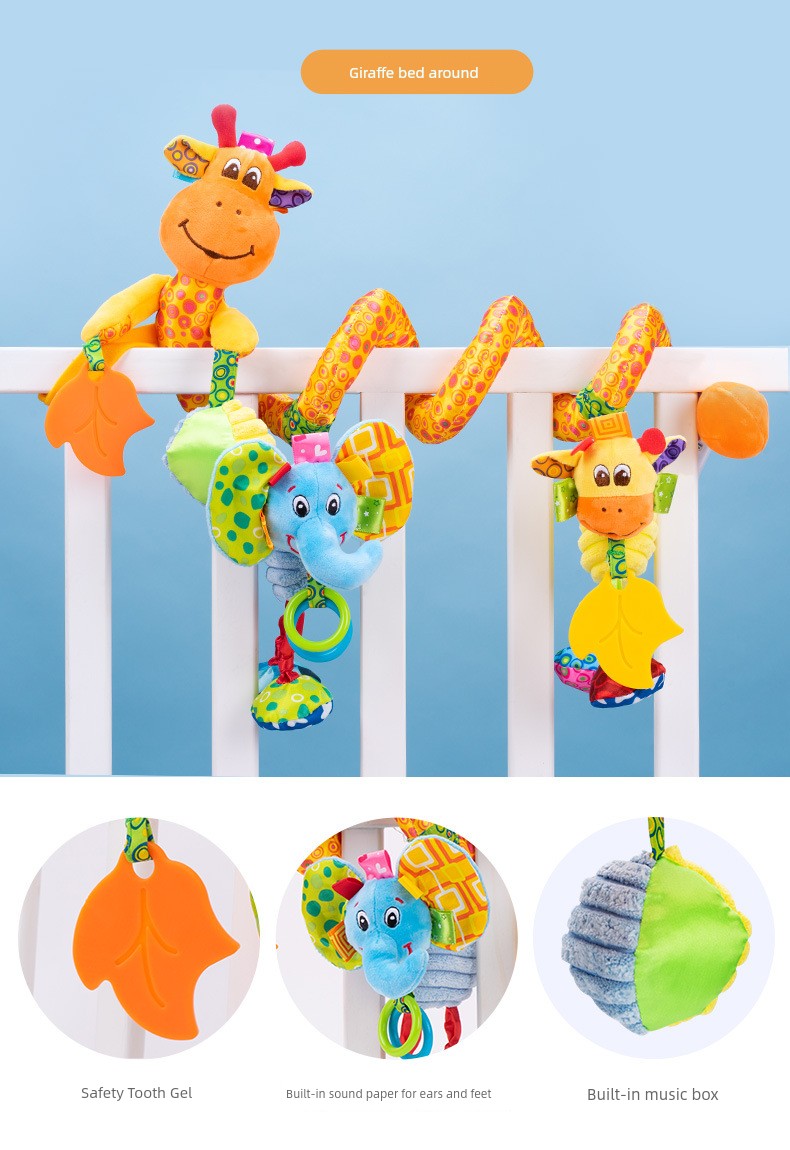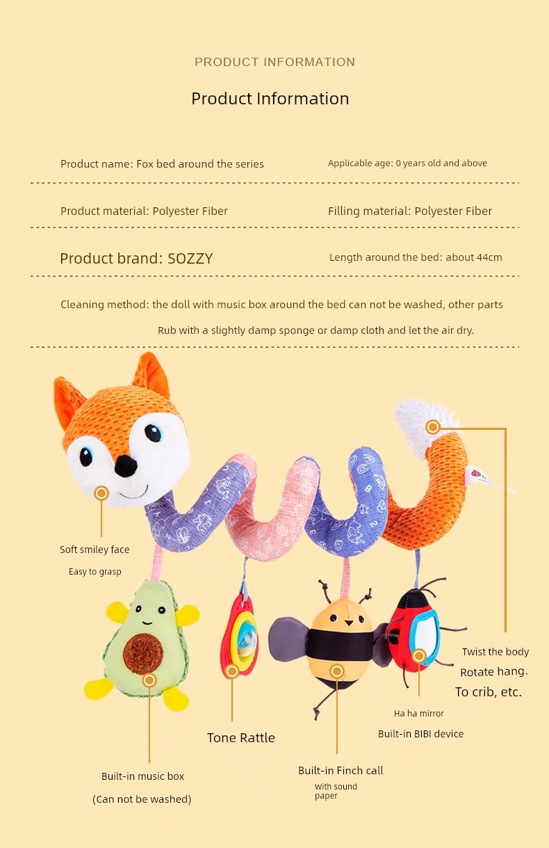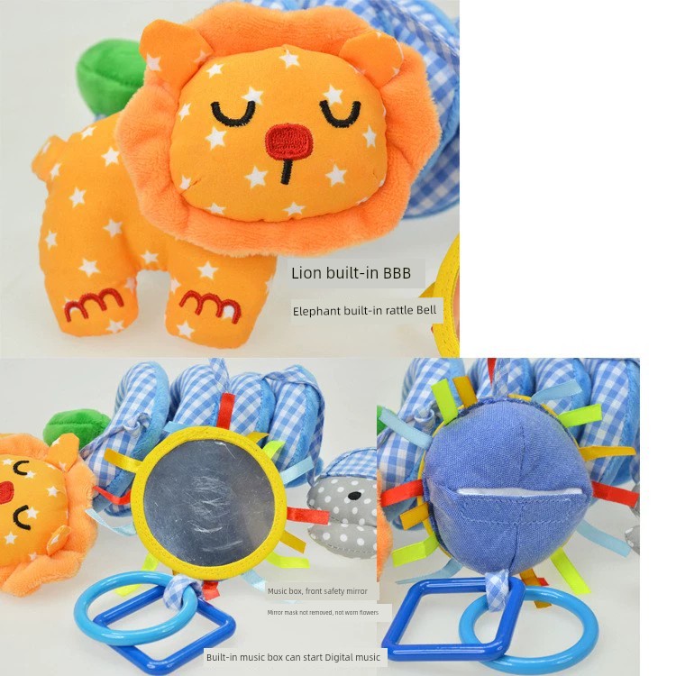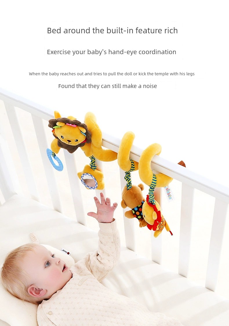 O móbile de berço Sozzy Music Bed Winding é perfeito para entreter e acalmar bebês desde o nascimento. Feito com tecido macio e seguro (certificação CE), possui elementos sensoriais como chocalho, papel que faz barulho ao toque, dispositivo BB, música suave e mordedor, promovendo o desenvolvimento tátil, auditivo e motor. Com aproximadamente 56cm de comprimento, pode ser facilmente enrolado em berços, carrinhos ou cercadinhos. Disponível em diferentes modelos, como estrela, macaco, leão azul e joaninha rosa. Indicado para meninos e meninas a partir de 0 meses, é um brinquedo educativo, divertido e seguro para o dia a dia.
